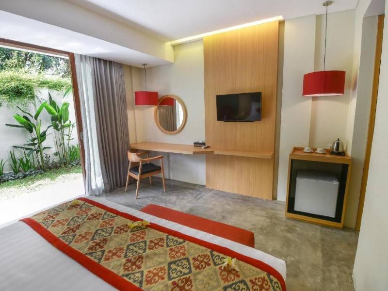 Our luxurious hotel offers beautifully appointed units that are designed to provide the utmost comfort and convenience for our esteemed guests. Each unit is thoughtfully equipped with a state-of-the-art flat-screen TV, ensuring that you can indulge in your favorite shows and movies in stunning high definition. Immerse yourself in a world of entertainment and relaxation as you unwind in the comfort of your own private sanctuary. Welcome to Villa Puri Ayu, where you can indulge in the breathtaking views of our pool from select rooms. Each of our well-appointed rooms also offers a delightful terrace, allowing you to relax and soak in the serene ambiance of our surroundings. Air conditioning and wardrobes are provided in the guest rooms of the lodging.